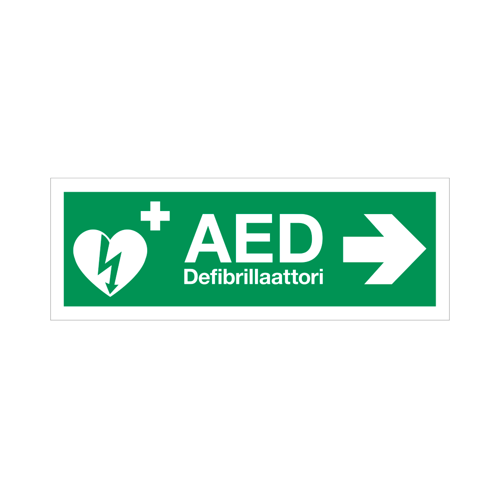 AED-kyltti ilmaisee selkeästi defibrillaattorin sijainnin