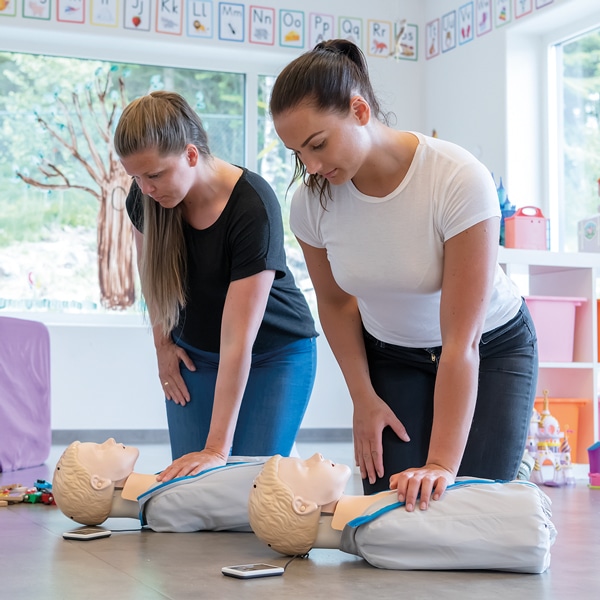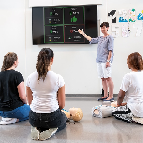 Laerdal ’Little Junior QCPR’ antaa ohjaajalle mahdollisuuden valvoa jopa kuutta oppilasta samanaikaisesti käsikäyttöisellä laitteella. QCPR-ohjaajan sovelluksen avulla suorituksia voi valvoa havainnollisesti, ja ohjaaja näkee, kuka oppilaista tarvitsee lisäohjausta. Näet nopealla silmäyksellä, kuka oppilaista ei paina tarpeeksi voimakkaasti, kuka ei paina oikeassa rytmissä ja kuka ventiloi liikaa. Oppilaat voivat seurata omia tuloksiaan QCPR-oppilaan sovelluksella tai järjestelmään kytketyllä SkillGuide-laitteella.