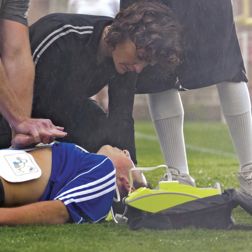 Kantolaukun avulla defibrillaattori on helppo ottaa mukaan.