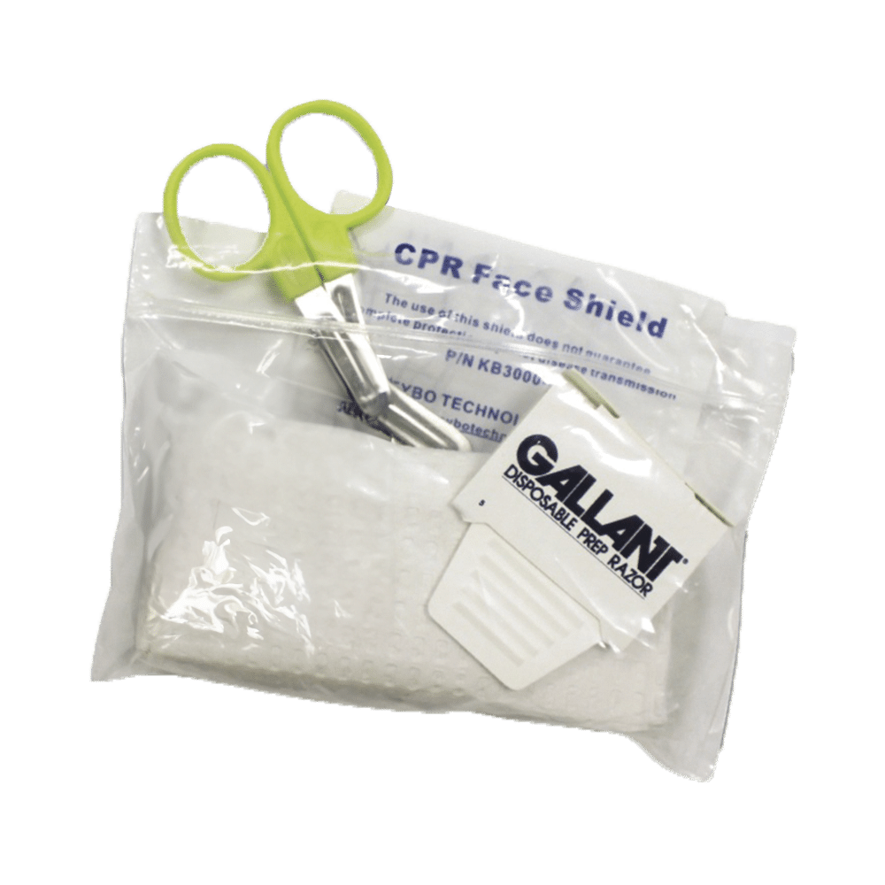 Pienikokoinen ja kattava tarvikepaketti sisältää tarvittavat välineet, jotta voit suorittaa elvytyksen ja ensiavun tehokkaasti. Olitpa sitten terveydenhuollon ammattilainen, ensiauttaja tai huolestunut sivustakatsoja, tarvikepaketin avulla olet valmis toimimaan nopeasti, kun jokainen sekunti ratkaisee.